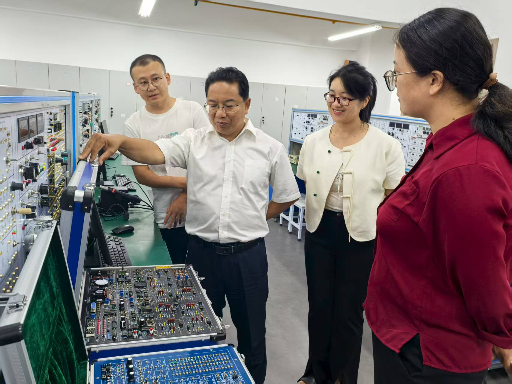 施勇在调研过程中强调:一是要筑牢安全防线,压实责任担当。“安全无小事”,要求学院提高政治站位,树牢底线思维,完善应急预案,加强实验实训室的规范管理,确保校园安全稳定;二是要以学生为本,深化育人实效。聚焦学生身心健康发展,通过文明修身行动培育学生良好习惯、道德品质及社会责任感,全面提升学生综合素质与核心竞争力;三是学院领导班子要团结协作、同频共振,紧盯学科发展前沿,立足学校和学院实际,进一步明确发展定位,创新工作思路,谋划制定科学的工作计划,抓好重点工作,加快推动学院高质量发展。