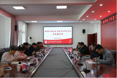 1月12日,杭州电子科技大学电子信息学院党委书记陈龙一行四人到我校进行交流座谈,旨在深化校际合作,加强优势互补,共同探索人才培养与学科建设新路径。